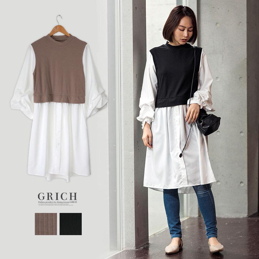 Sale クーポン利用 2992円 送料無料 ワンピース ボリューム袖 ドッキング ブラウス シャツ シャツワンピ ベスト レイヤード コーデ ぽわん袖 カジュアル 黒 M0 Growingrich 通販 Yahoo ショッピング